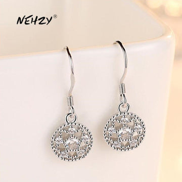 NEHZY 925 sterling silver earrings jewelry high quality new retro simple hollow round super flash Zircon earrings hot sale