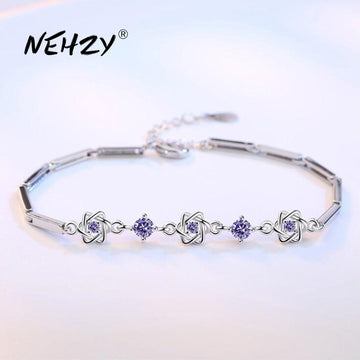 NEHZY 925 sterling silver jewelry bracelet high quality retro fashion woman purple crystal flower type bracelet length 20CM