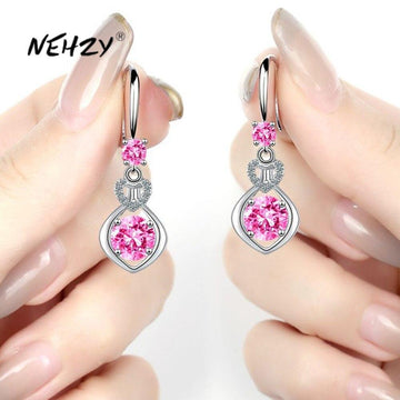 NEHZY 925 Sterling Silver New Woman Fashion Jewelry High Quality Blue Pink Crystal Zircon Heart Shaped Long Tassel Hook Earrings
