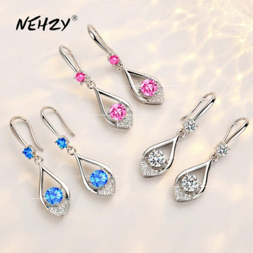 NEHZY 925 Sterling Silver New Woman Fashion Jewelry High Quality Blue Pink White Crystal Zircon Hot Selling Retro Earrings