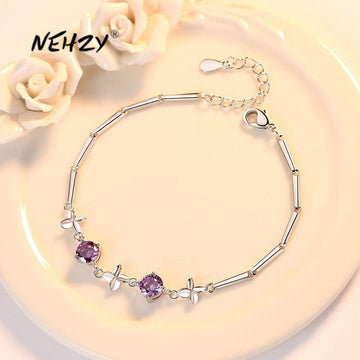 NEHZY 925 Sterling Silver New Woman Fashion Jewelry High Quality Crystal Zircon Flower Bracelet Length 16CM+4CM