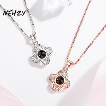 NEHZY 925 Sterling Silver New Woman Fashion Jewelry High Quality Crystal Zircon Flower Rose Gold Pendant Necklace Length 45CM
