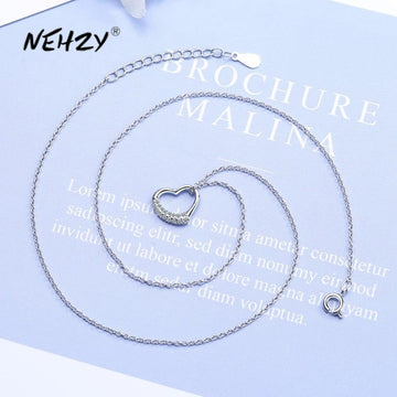 NEHZY 925 Sterling Silver New Woman Fashion Jewelry High Quality Crystal Zircon Heart Pendant Necklace Length 43.5CM