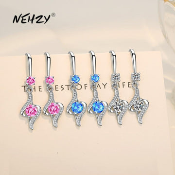 NEHZY 925 sterling silver new woman fashion jewelry high quality retro hollow blue pink crystal zircon long tassel hook earrings