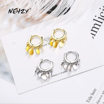 NEHZY 925 Sterling Silver New Woman Fashion Jewelry High Quality Retro Simple Glossy Round Gold Silver Earrings