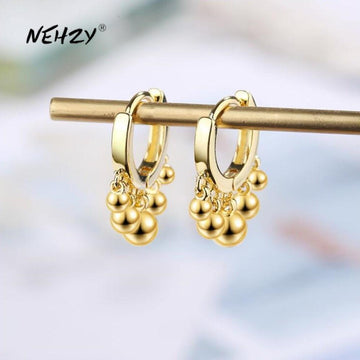 NEHZY 925 Sterling Silver New Woman Fashion Jewelry High Quality Retro Simple Round Light Bead Gold Silver Earrings