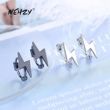 NEHZY 925 Sterling Silver New Woman Fashion Jewelry High Quality Simple Crystal Zircon Black Silver Lightning Earrings