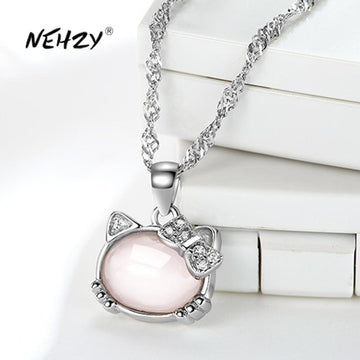 NEHZY 925 sterling silver new woman fashion jewelry high quality simple crystal zircon cat pendant necklace length 45CM
