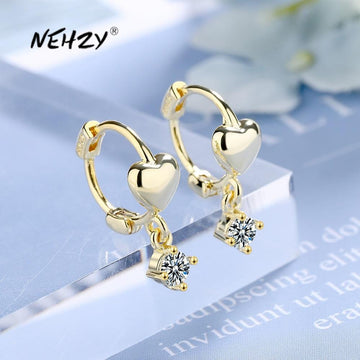 NEHZY 925 Sterling Silver New Woman Fashion Jewelry High Quality Simple Crystal Zircon Gold Silver Heart-shaped Earrings