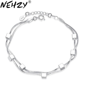 NEHZY 925 sterling silver new woman jewelry Fashion brand box sweet double snake bone chain bracelet 17+3CM
