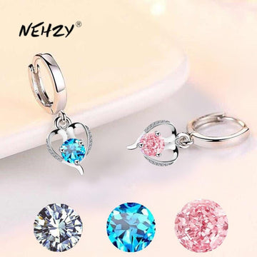 NEHZY 925 sterling silver new women's fashion jewelry earrings blue pink zircon crystal heart-shaped long tassel retro earrings