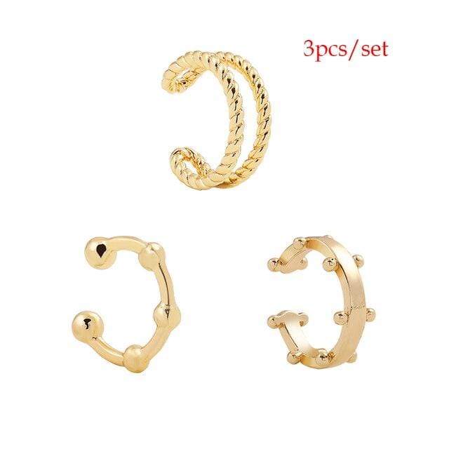 New Fashion Crystal Metal Ear Cuff Set for Women Boho Trendy Stackable Cuff Statement Rhinestone Clip Earrings Earcuffs Jewelry