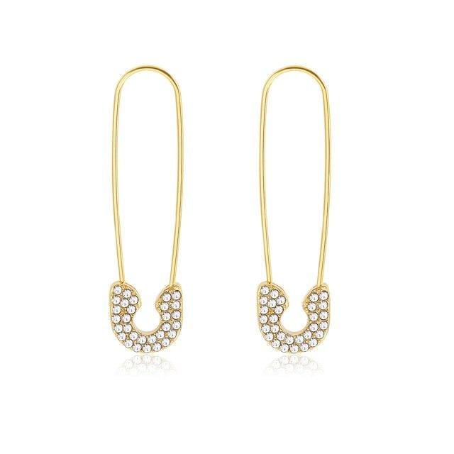 New Fashion Rhinestone Evil Eye Stud Earrings Female Charm Geometric Statement Safety Pin Earrings Women Jewelry Accessories