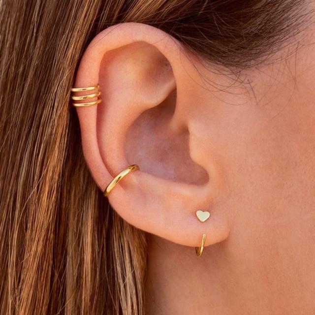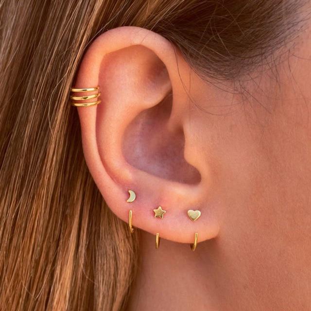 Trendy Mini Moon Star Heart Stud Earrings for Women Girls Punk Gold Color Ear Cuff Pendientes Girls Ear Jewelry Gift 2021 New