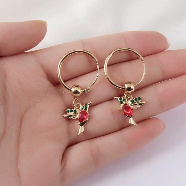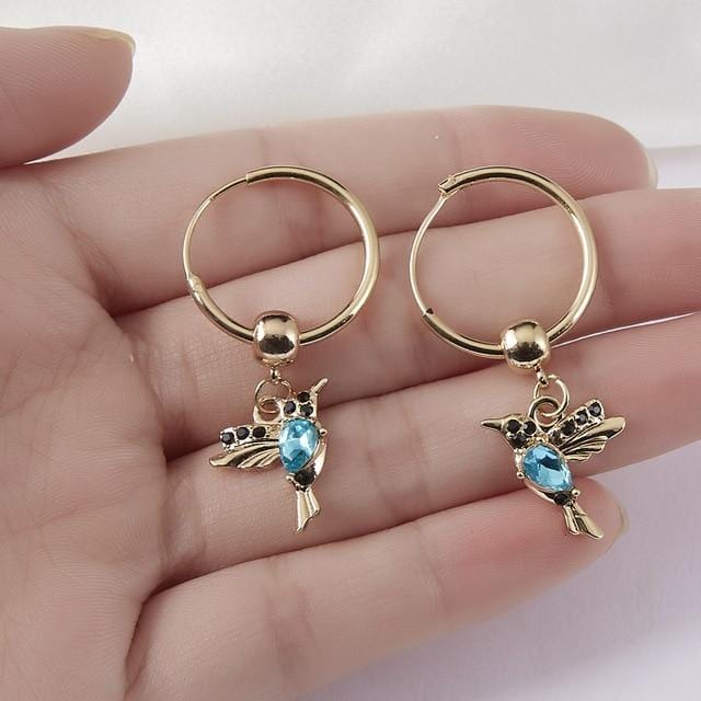 1 Pair Unique Long Drop Earrings Bird Pendant Tassel Crystal Pendant Earrings Ladies Jewelry Design 2 Colors Hummingbird Earring