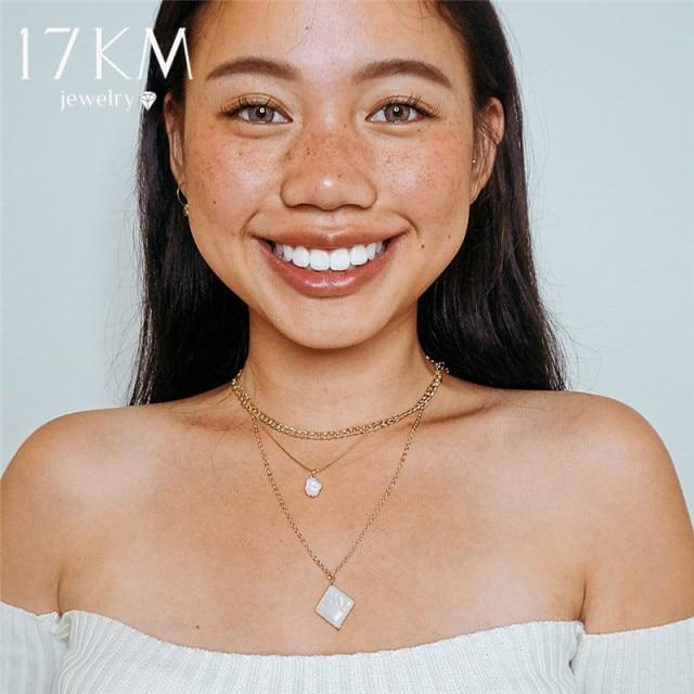 17KM 2020 Hot Pearl Necklaces & Pendants For Women Girls Multi Layer Long Choker Necklace Personality Fashion Jewelry Gift