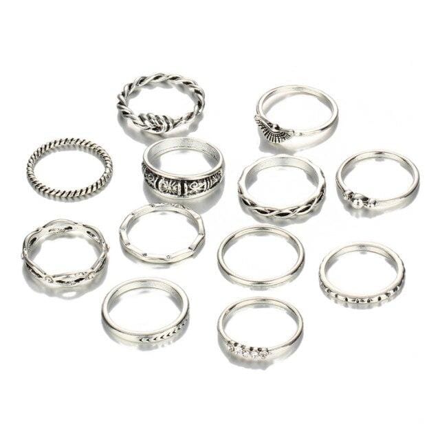 17KM 8 Pcs/Set Simple Design Round Gold Color Rings Set For Women Handmade Geometry Finger Ring Set Female Jewelry Gifts