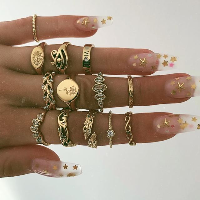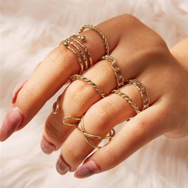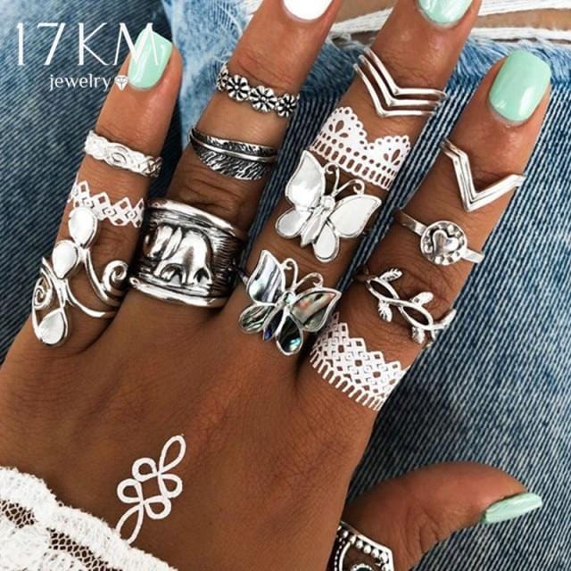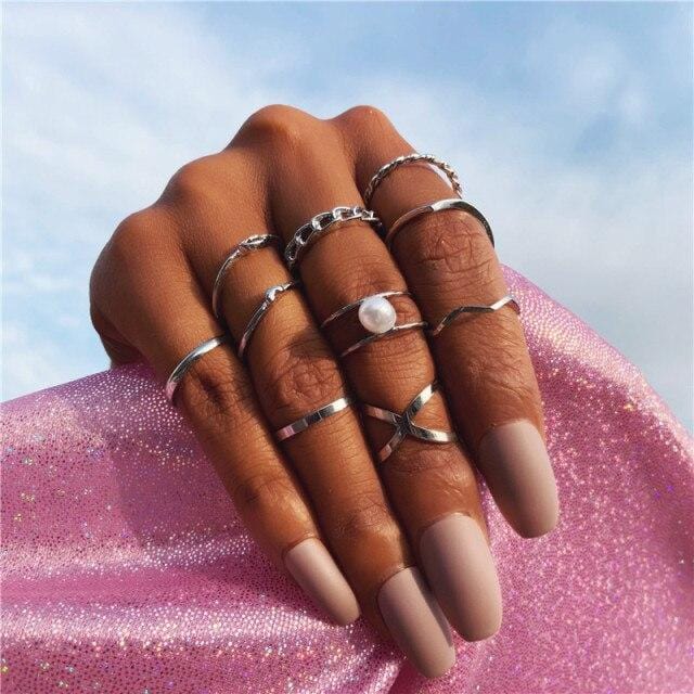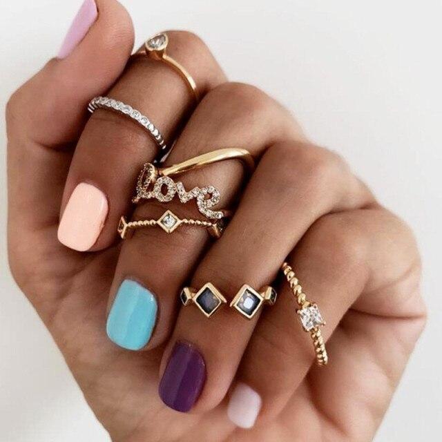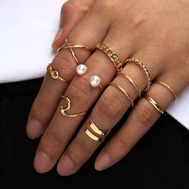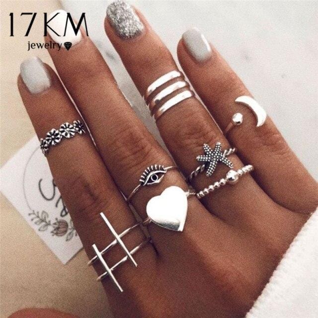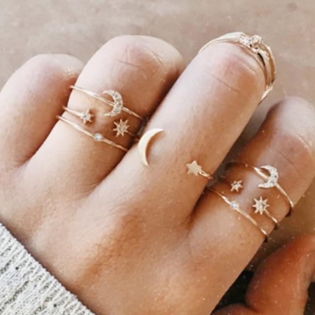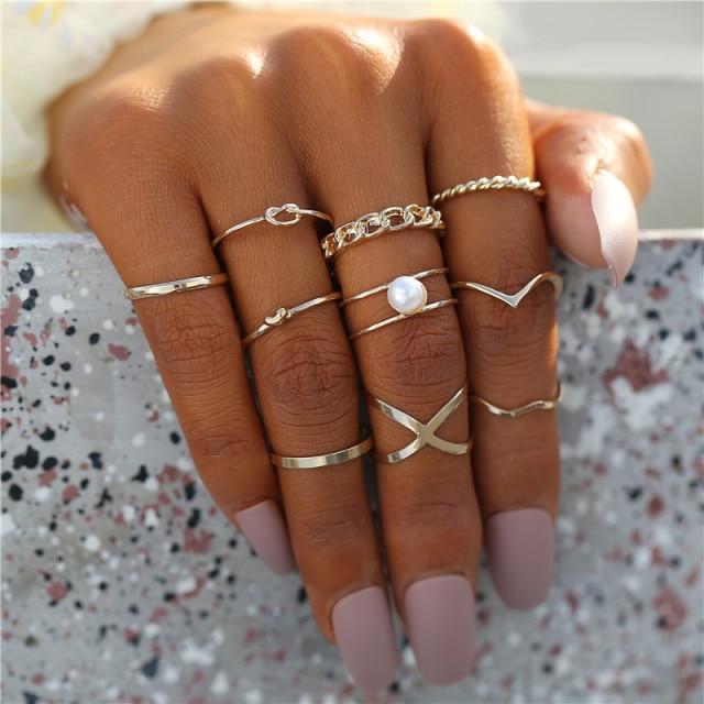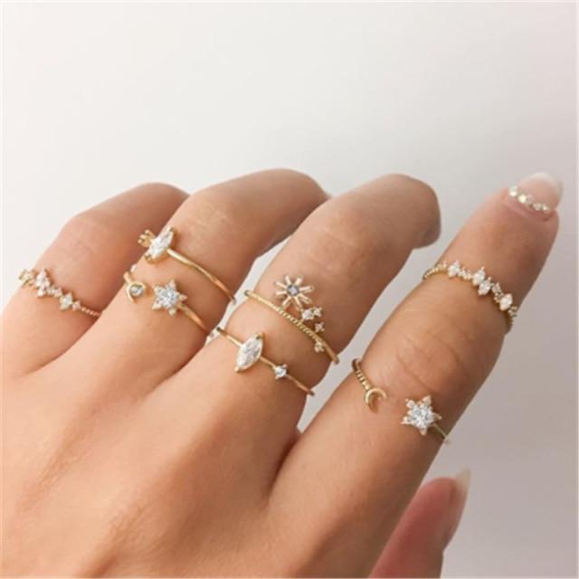 17KM Bohemian Crystal Rings Set Star Gold Color Rings For Women Fashion Geometric Pearl Ring Trendy 2020 Jewelry Gifts Party