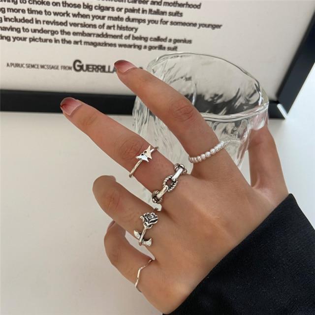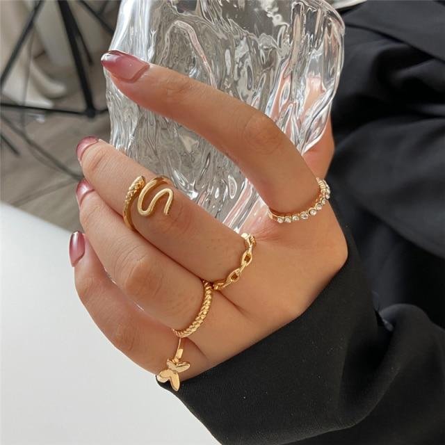 17KM Bohemian Gold Butterfly Rings Set For Women Girls Pearl Resin Flower Cross Chain Finger Rings Jewelry Party
