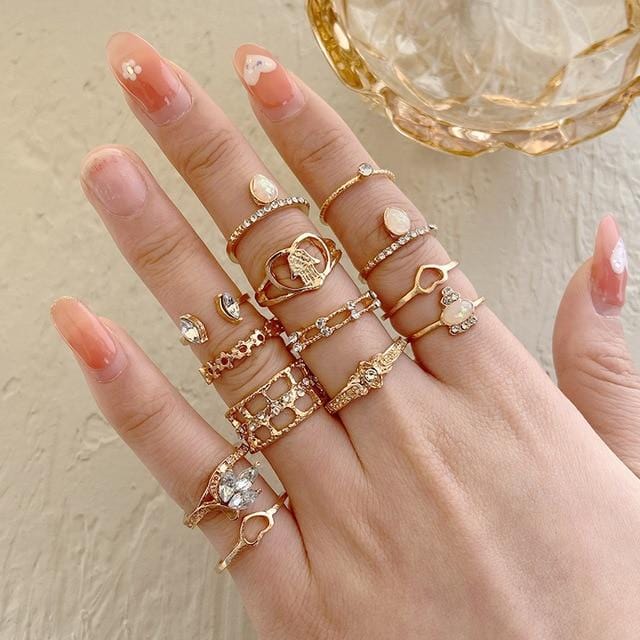 17KM Bohemian Gold Chain Rings Set For Women Fashion Boho Coin Snake Moon Rings Party 2021 Trend Jewelry Gift