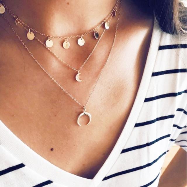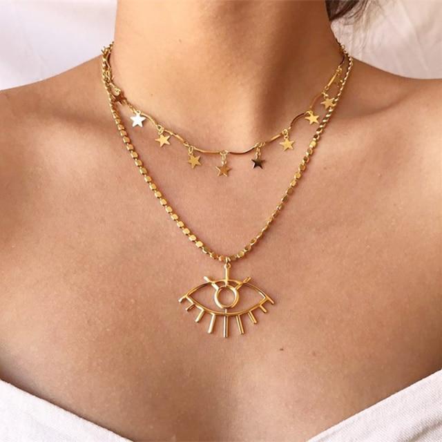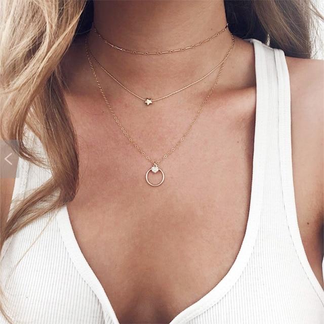 17KM Bohemian Gold Star Necklaces For Women Heart Flower Choker Pendant Necklace 2020 Ethnic Multilayer Female Fashion Jewelry