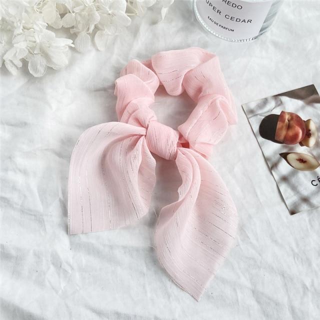 17KM Fashion Colorful Bow Satin Long Ribbon Women Hair Scrunchies Scarf Ponytail Holder Elastic Hair Bands Hair Accessories