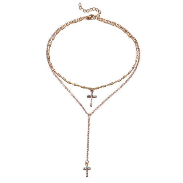 17KM Fashion Gold Color Crystal Cross Necklaces Pendants Bohemian Double Layered Necklace Catholic Religious Christian Jewelry