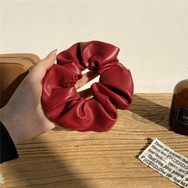 17KM Fashion Leather Scrunchies Solid Red Rubber bands For Women Girls Korean Elastic Hair bands Ponytail Hold Hair Accessories