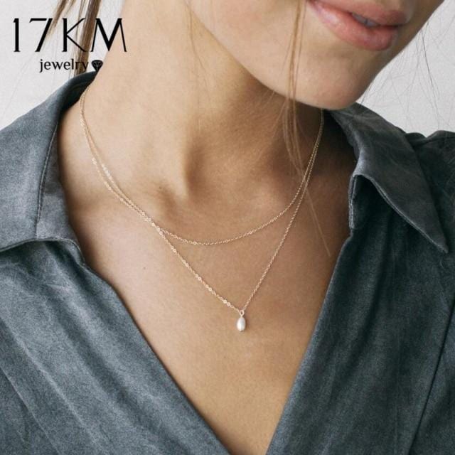 17KM Fashion Long Pearl Necklace For Women Boho Multilayered Pearl Pendant Necklace 2021 Trend Choker Sweater Chain Jewelry