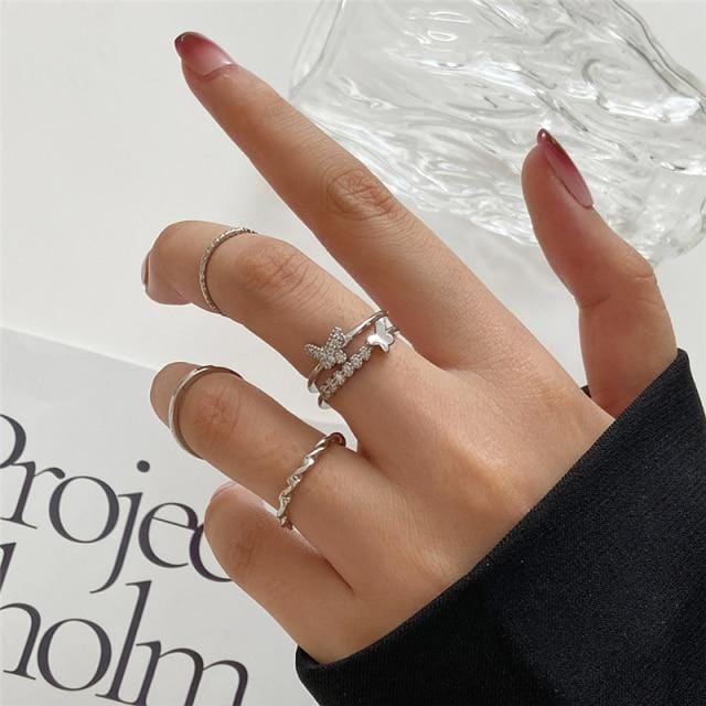 17KM Fashion Resin Chain Rings Set For Women Lady Trendy Gold Metal Alloy Butterfly Opening Finger Ring Wedding Gifts Jewelry