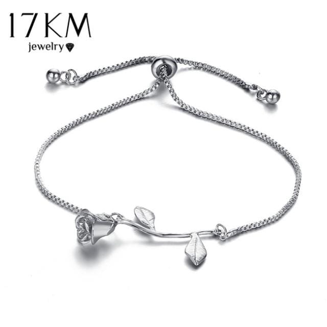 17KM Fashion Rose Flower Charm Bracelet For Women Girl Bracelet & Bangle Adjustable Pulseras Mujer Wedding Bridal Jewelry Gift