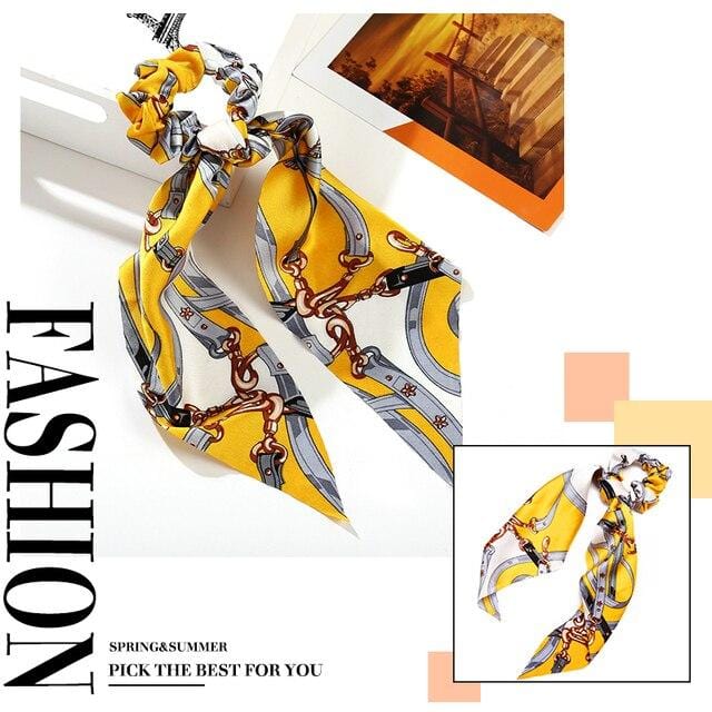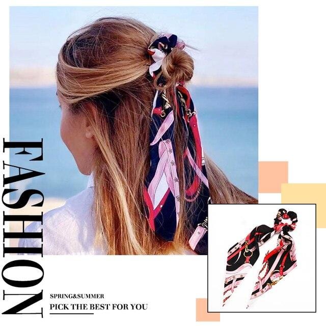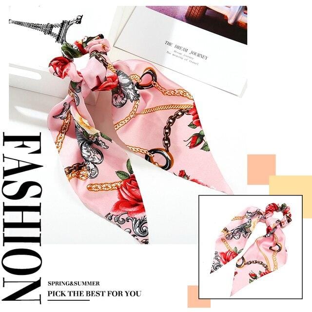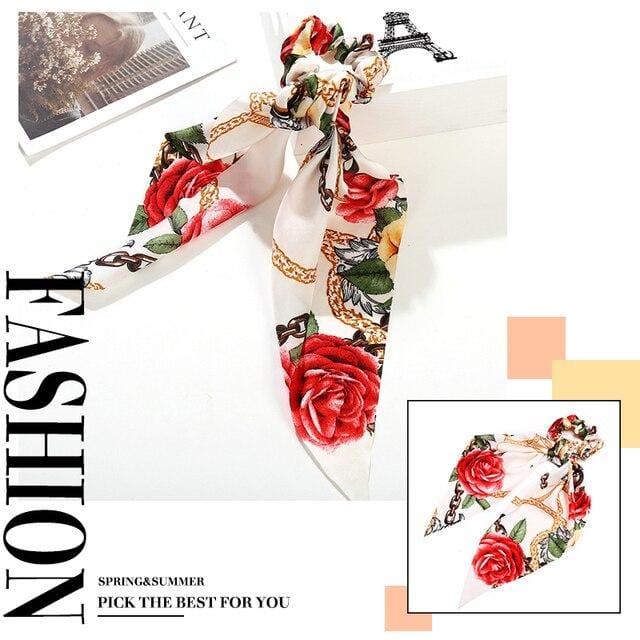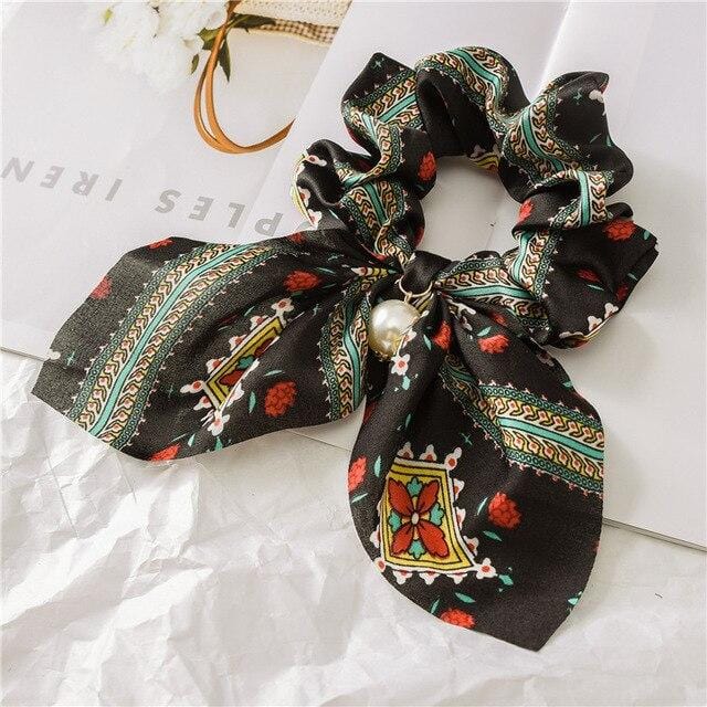 17KM Floral Pearl Hair Band Long Ribbon Bow Ponytail Scarf Hair Tie Scrunchies Women Girls Elastic Hair Bands Hair Accessories