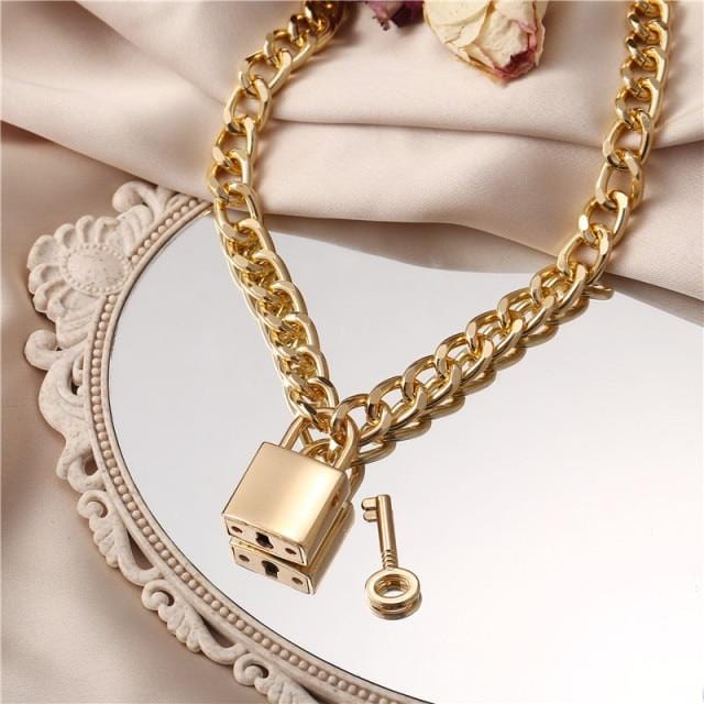 17KM Gothtic Gold Lock Chunky Chain Necklace For Women Men Big Chain Unlockable Lock Key Pendant Necklaces Exaggerated Jewelry