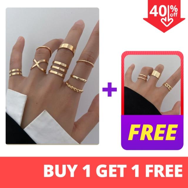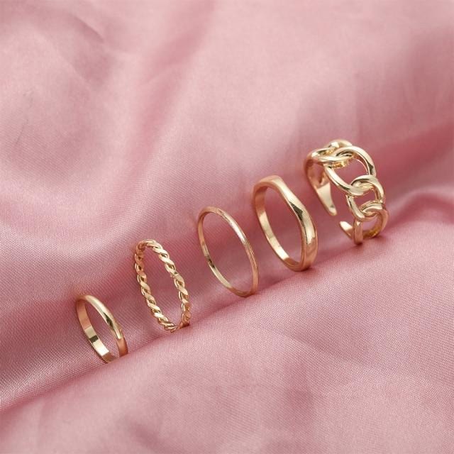 17KM Hiphop Gold Chain Rings Set For Women Girls Punk Geometric Simple Finger Rings 2021 Trend Jewelry Party