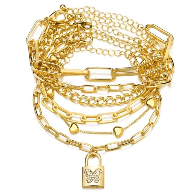 17KM Punk Gold Multilayer Lock Crystal Chain Bracelets Set Retro Geometric Snake Pendant Charm Bracelet 2021 Trend Jewelry