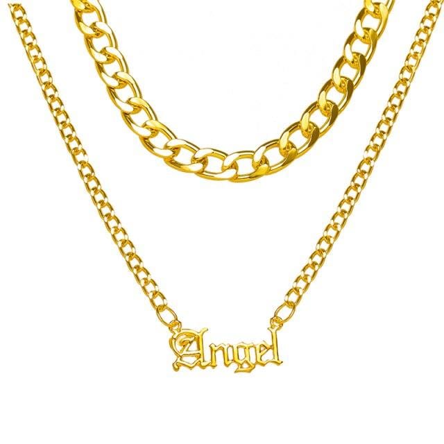 17KM Punk Gold Personality Letter Necklace For Women Gothic Multilayer ANGEL Choker Necklace 2021 Trend Statement Jewelry Gifts