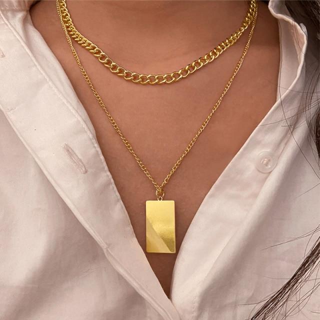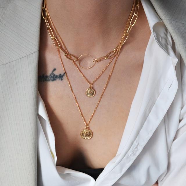 17KM Punk Multilayered Gold Chunky Chain Choker Necklace For Women Fashion Irregular Round Pendant Necklace 2021 Trend Jewelry