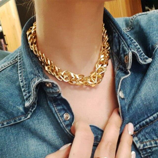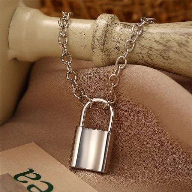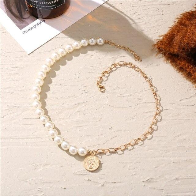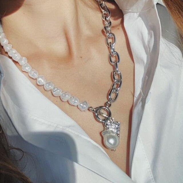 17KM Trendy Asymmetric Lock Pearl Pendant Necklace For Women Fashion Coin Big Chain Choker Necklaces Jewelry Christmas Gift