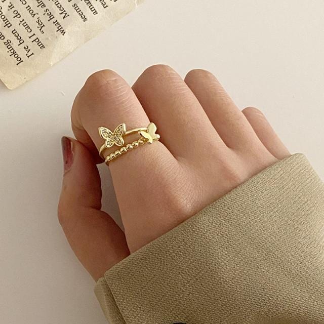 17KM Trendy Crystal Butterfly Ring For Women Fashion Resizable Gold Wedding Opening Finger Rings Personality 2021 Jewelry