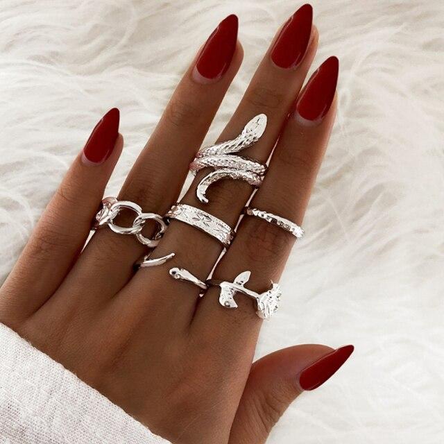 17KM Trendy Geometric Silver Color Rond Rings Set For Women Fashion Chain Rings Party Jewelry Gift