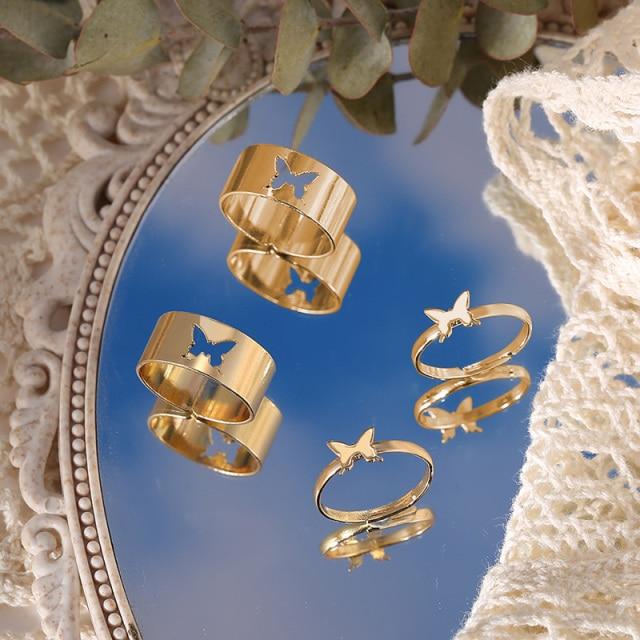 17KM Trendy Gold Butterfly Rings For Women Men Lover Couple Rings Set Friendship Engagement Wedding Open Rings 2021 Jewelry
