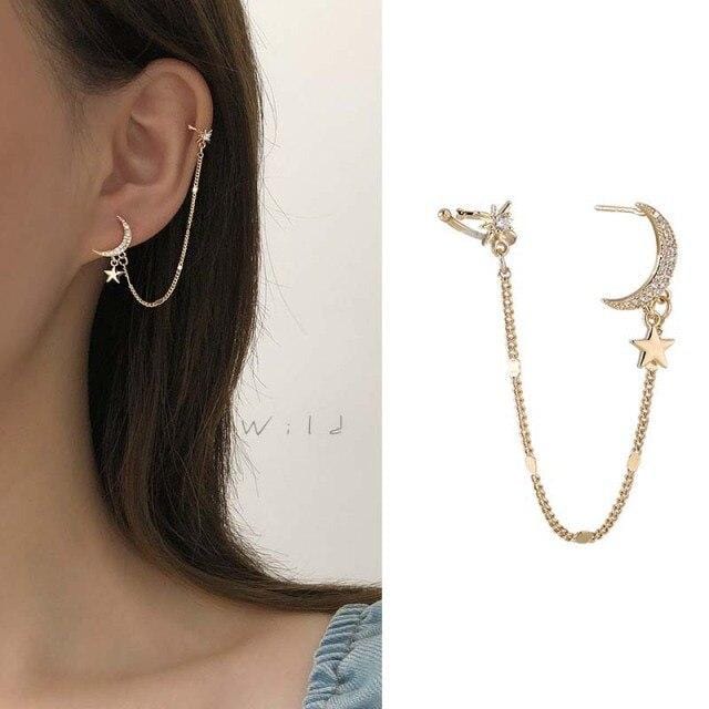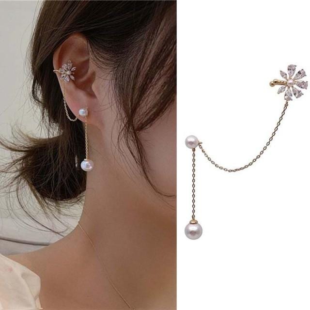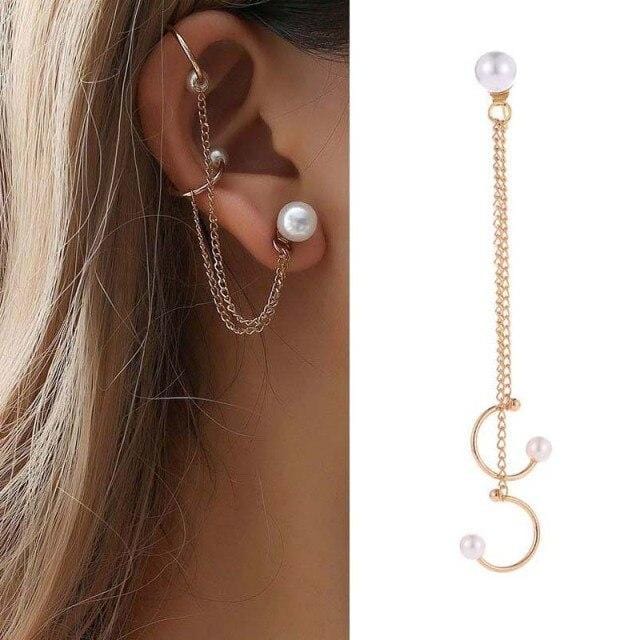 1PC Pearl Chain Ear Clip Trendy Imitation Pearl No Pierced Ear Cuff Chain Earrings for Women Long Earring Jewelry Party Gift