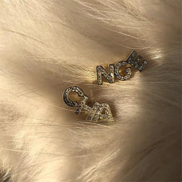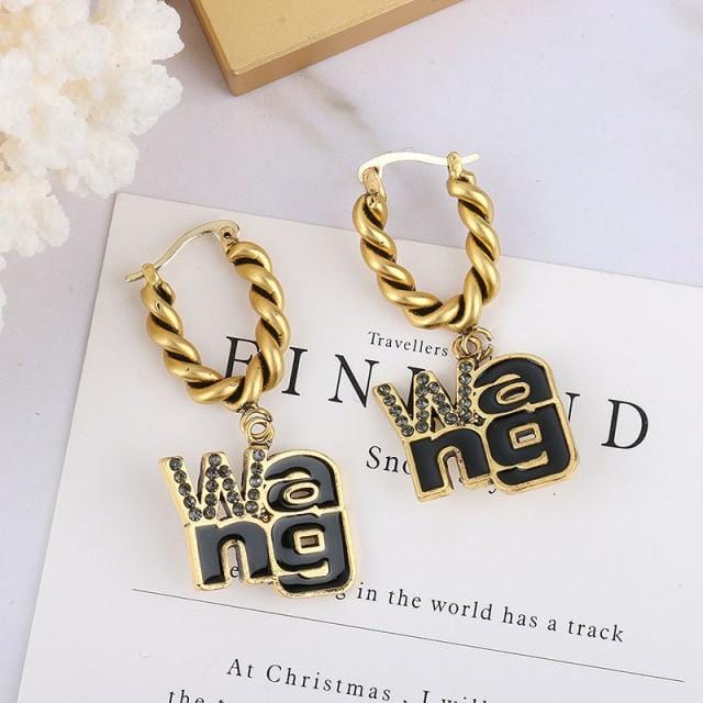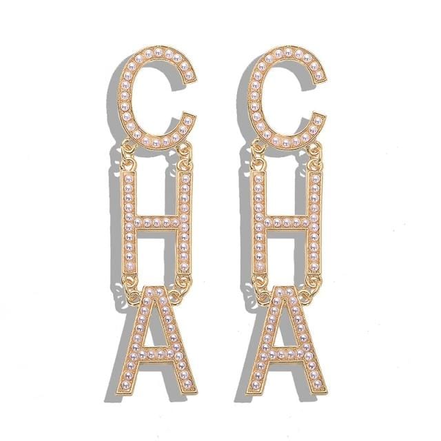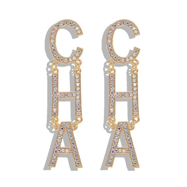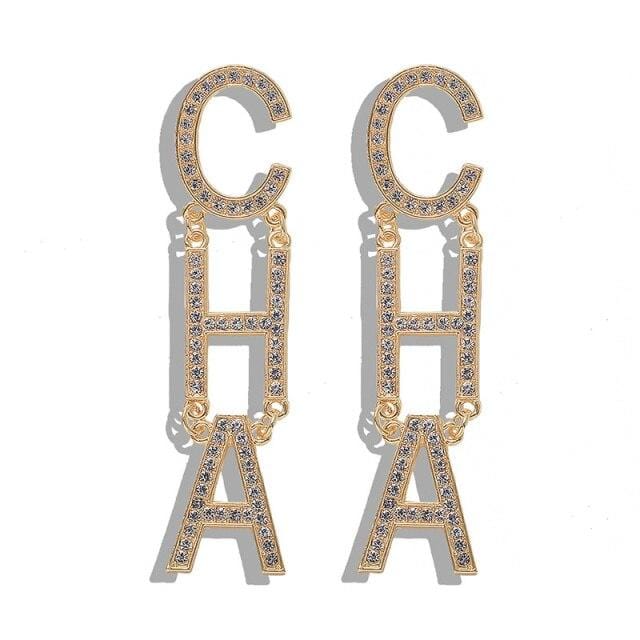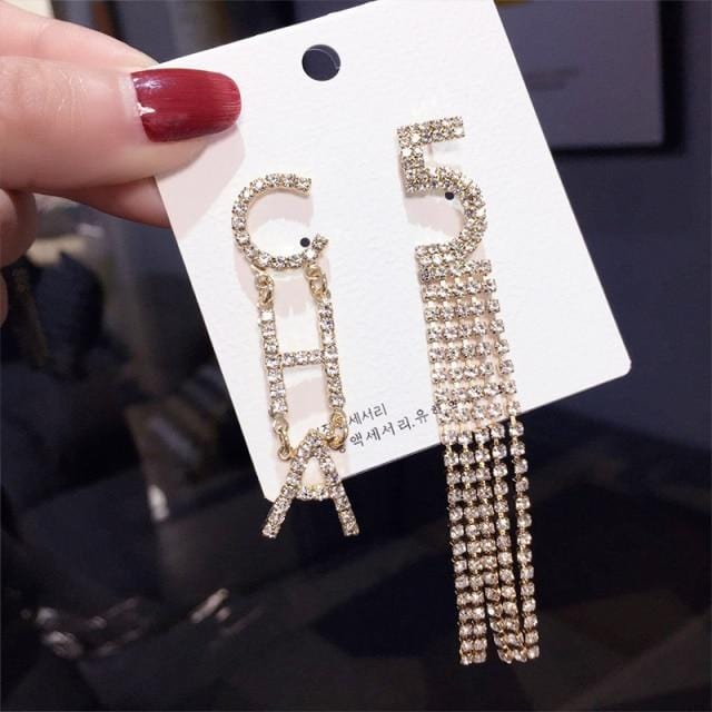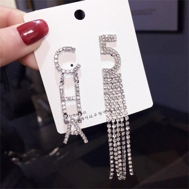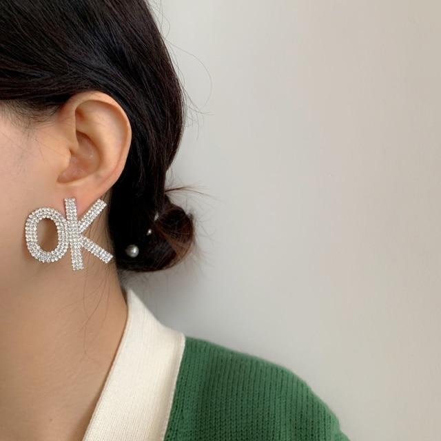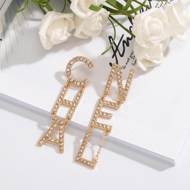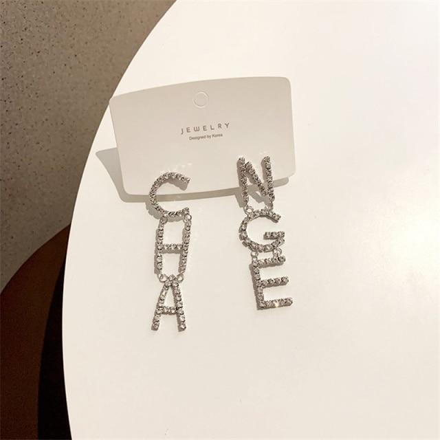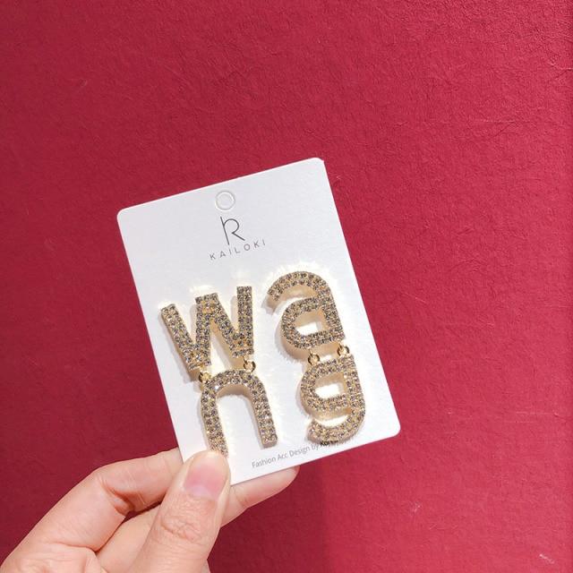 2020 Fashion Punk Exaggerated Fashion Crystal Wang Letter Earrings Rhinestone Letters Dangle Earrings For Women Girl Jewlery