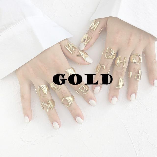 2020 New Adjustable Open Ladies Meaningful Gold Initial Rings Jewelry Gift Chunky A-Z Letter Rings For Women