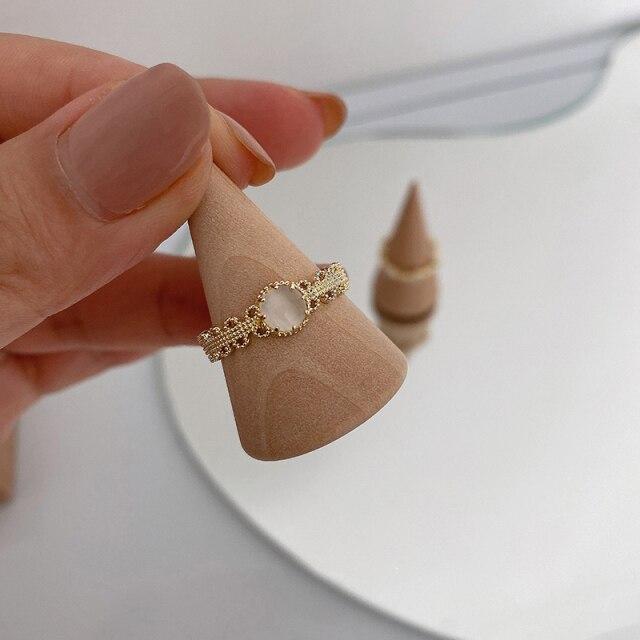 2020 New Simple Metal Lace Edge Opal Ring For Woman Fashion Wedding Party Girl's Unusual Jewelry Korea Luxury Exquisite Ring