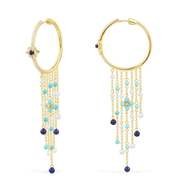 2021.7 month new S925 sterling silver Monaco jewelry set necklace bracelet earrings Roman style women blue stone jewelry gift