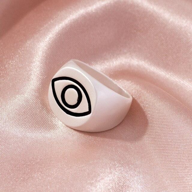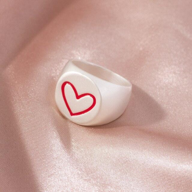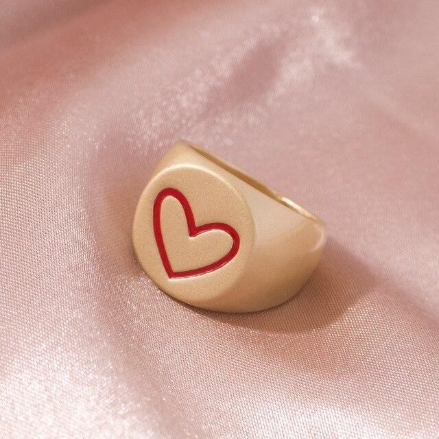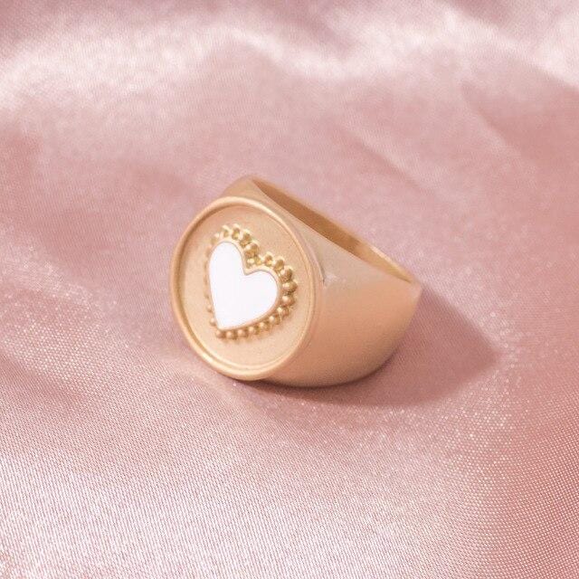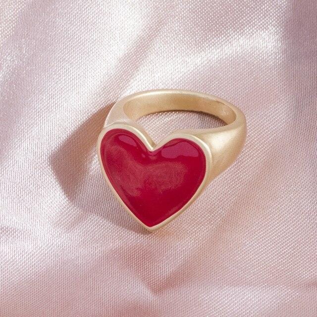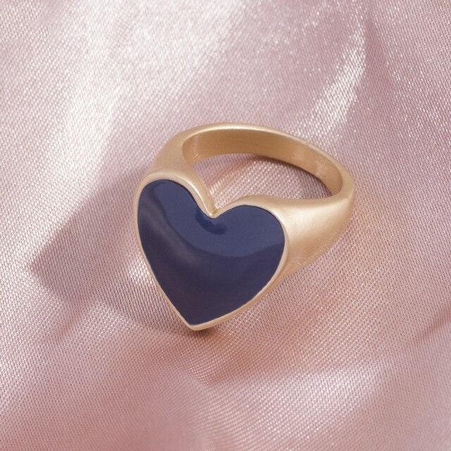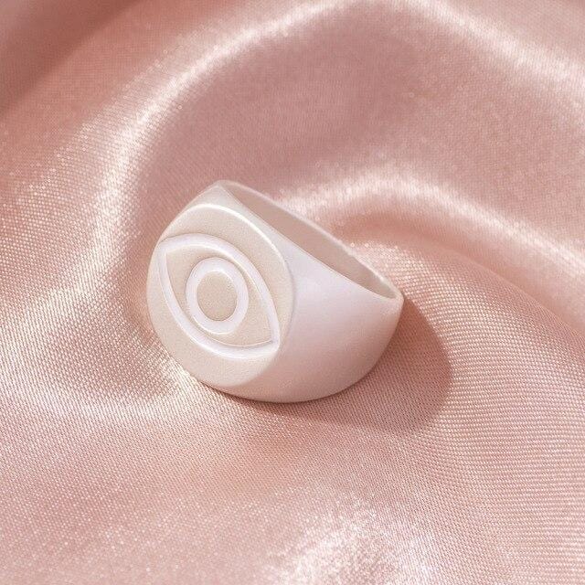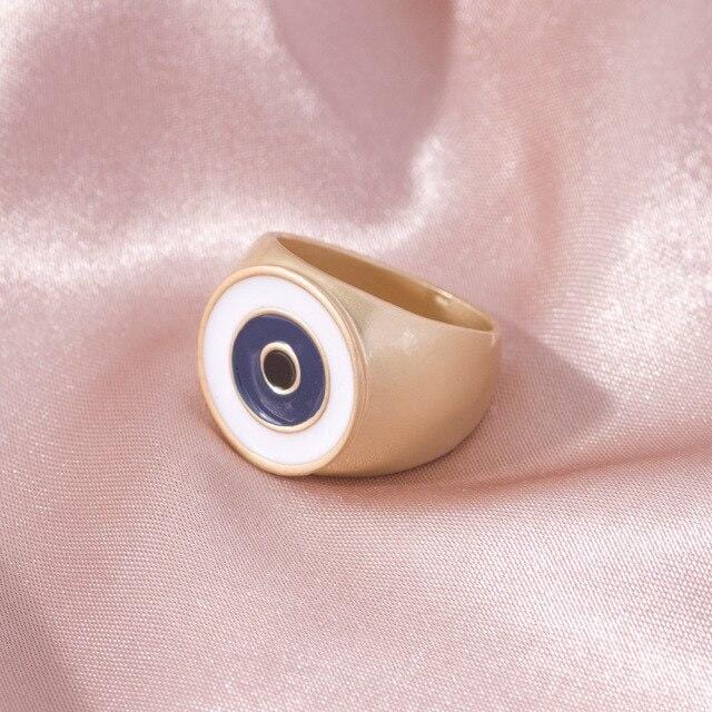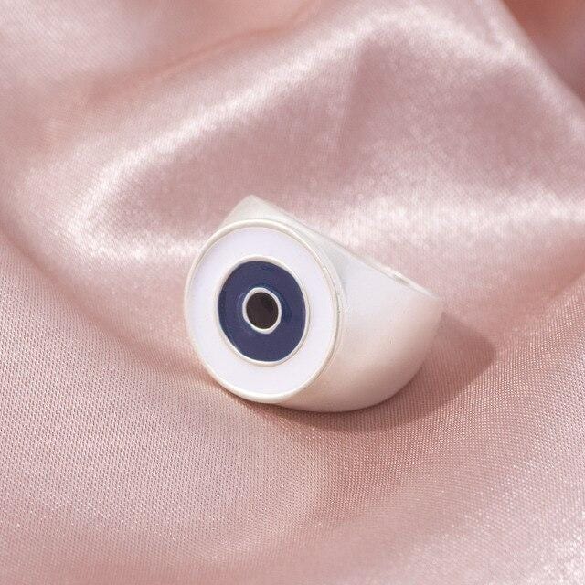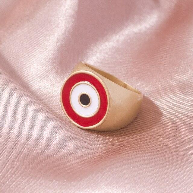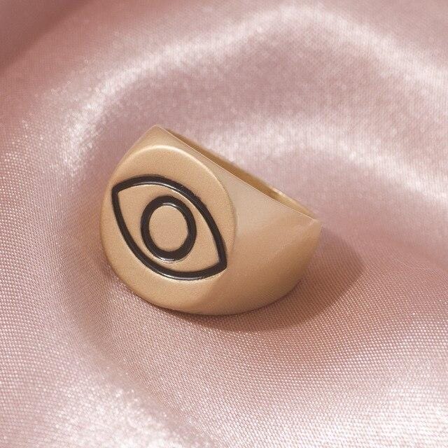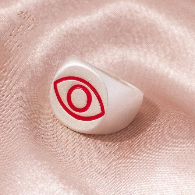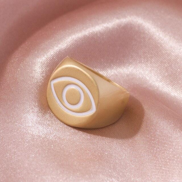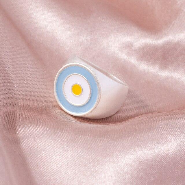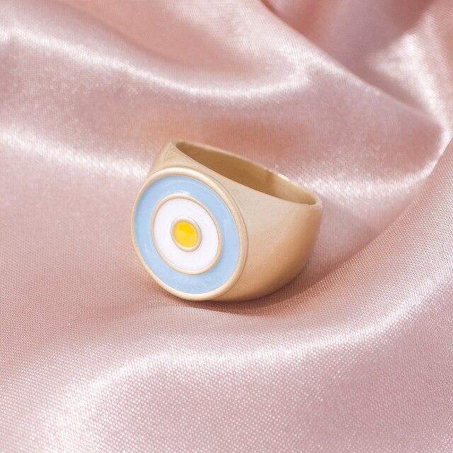2021 Ins Cute Sweet Colorful Enamel Eye Heart Ring for Women Girls Fashion Matte Gold Stacking Finger Rings Jewelry Party Gift