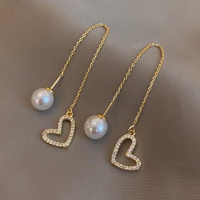 2021 New Classic Pearl Pendant Peach Heart Love Modeling Ear Line Fashion Korean Jewelry For Woman Party Girl’s Dangle Earrings
