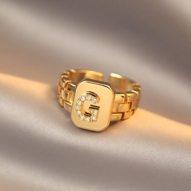 2021 New Design Metal Chain B or G Letter Opening Golden Rings Korean Fashion Jewelry Party Gothic Girl's Luxury Rings For Woman