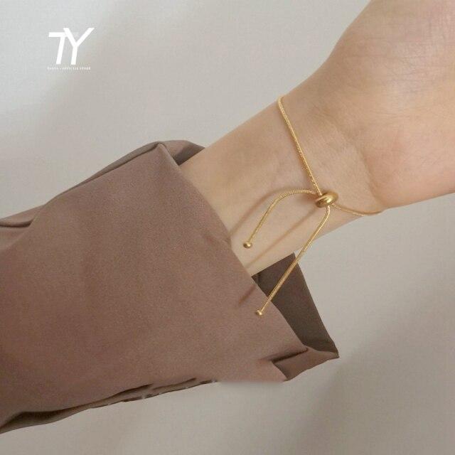2021 New Design Sense Pull Adjustable Stainless steel Necklace For Womans Simple Clavicle Chain For Korean Fashion Jewelry Girls
